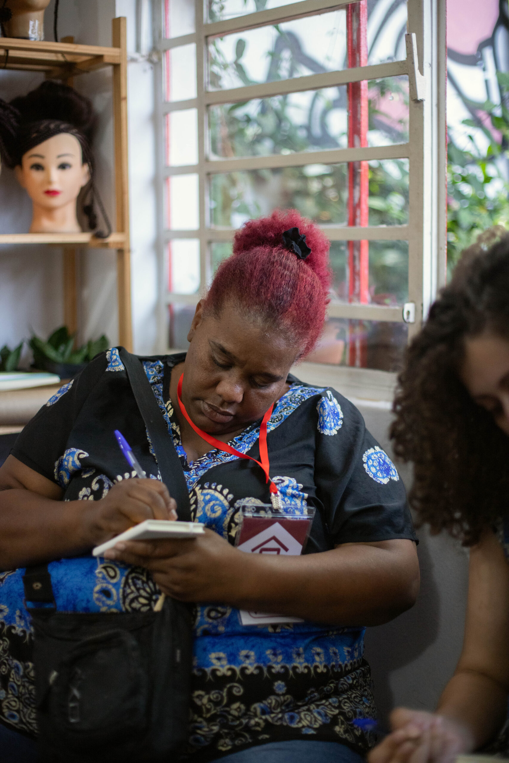 Esta zine foi produzida a partir da oficina de escrita criativa realizada durante o projeto “O Teto e a Tela”. Inspirada na obra de Carolina Maria de Jesus, a atividade convidou mães e cuidadoras periféricas a transformar suas experiências em palavras, como forma de registrar a vida e os sentimentos.